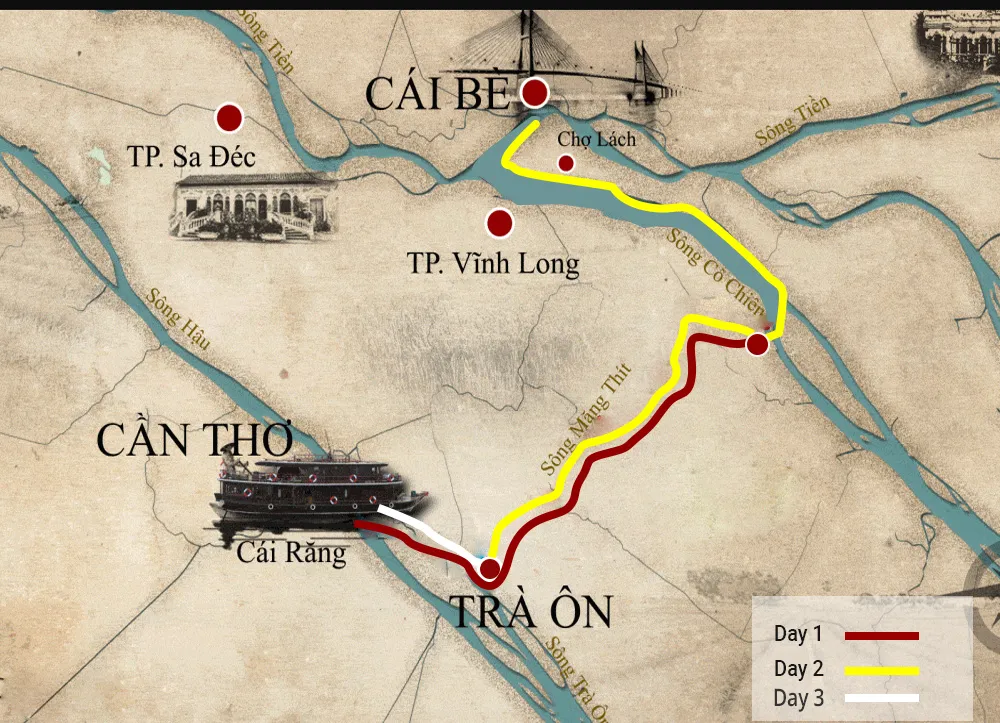 Erkunden Sie das Mekong-Delta mit dem traditionellen Holzboot Bassac in 3 Tagen und 2 Nächten. Fahren Sie auf den Flüssen, durchqueren Sie Vietnams größtes Reis- und Obstanbaugebiet, interagieren Sie mit freundlichen Einheimischen und erleben Sie kulinarische Spezialitäten und Kultur.