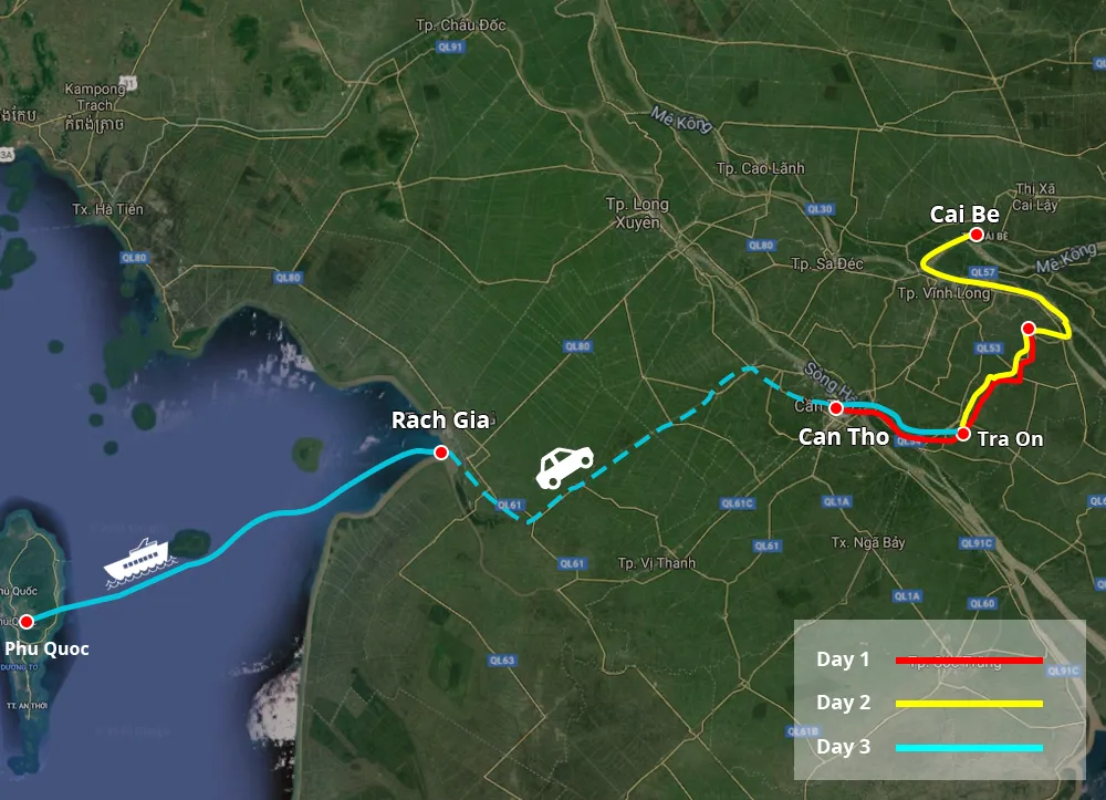 C'est une excellente idée de combiner l’exploration du delta du Mékong et l’escale balnéaire sur une plage de l'île de Phu Quoc. Mekong Dragon Eyes vous propose une croisière en 3 jours et 2 nuits disponible tous les jours impairs (les 1er, 3, 5, 7, etc.) au départ de Saigon ou Can Tho.